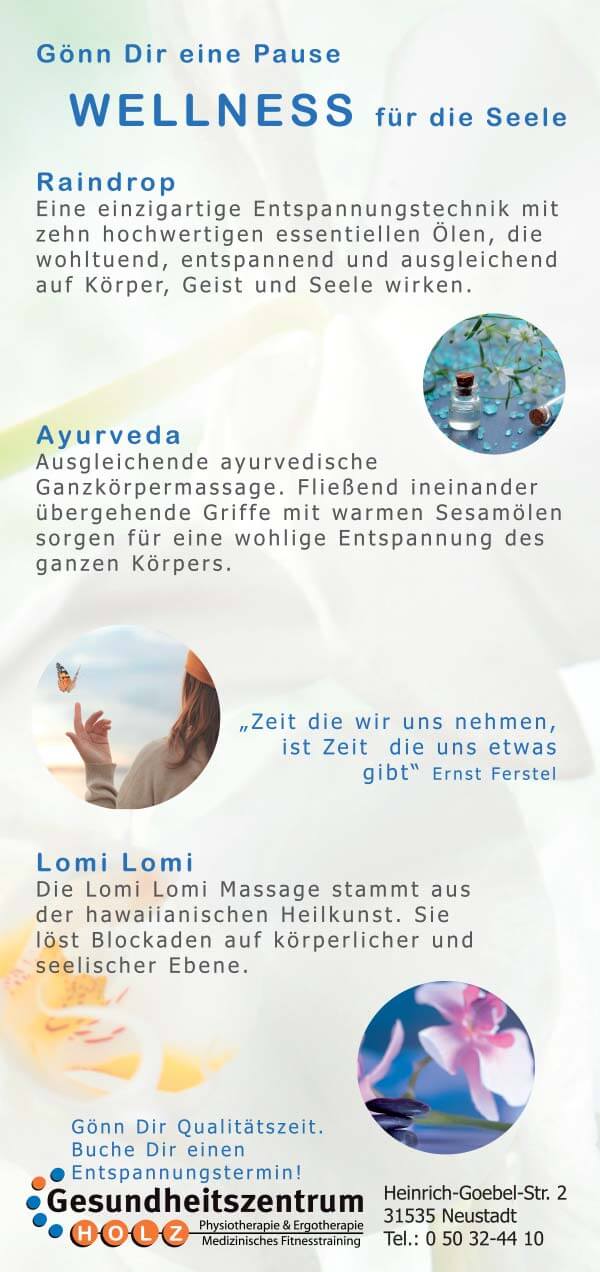 Die Massage mit ätherischen Ölen wirkt entspannend und harmonisierend auf Körper, Geist und Seele.